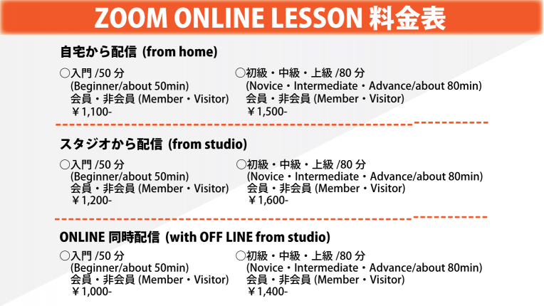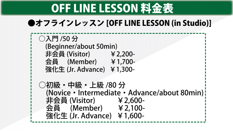 ※「OFFLINE(in Studio)LESSON[スタジオにて受講]」につきましては、各クラス人数制限(定員)があります。